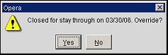 When highlighting this Closed Rate Code and selecting the OK button, a message prompt is displayed for notification for the reason that the rate code is closed and to make sure that the user wants to override the rate.
