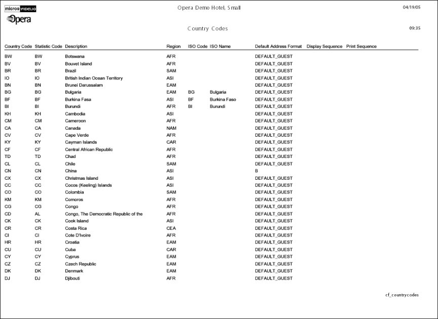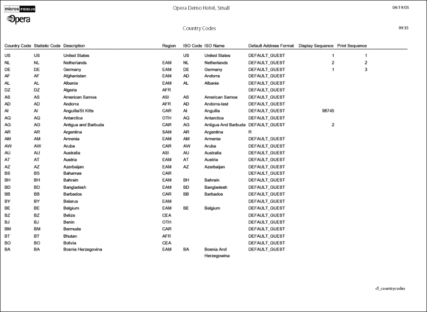 Configuration - Country Codes (cf_countrycodes with GENREPPAR.FMX)