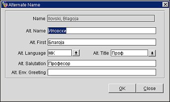 The name of the guest before translation, from the originating language, displays on the Alternate Name screen. This screen appears when the globe icon is selected at the Name field on the Profile Screen. See Alternate Name for more information.