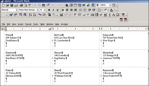 Note: To modify the Word document for this mail merge only, you can close the merged document, edit the doc template, then create the merged document again by using the Merge button in Word. Any changes to the template made in this way will not be reflected in the template stored in the OPERA database. Use the Open option discussed below to make permanent changes to the Word template.