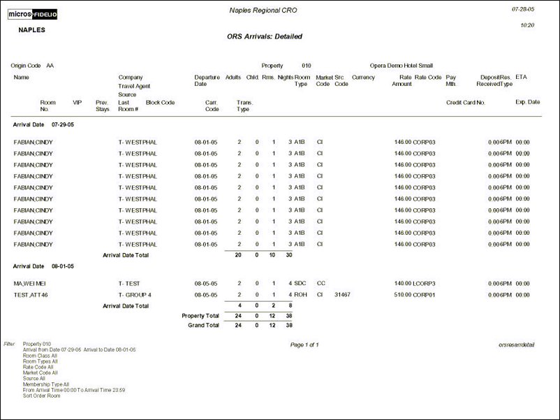 Property. Select the property whose arrival details you want to view, or leave the default to ALL.