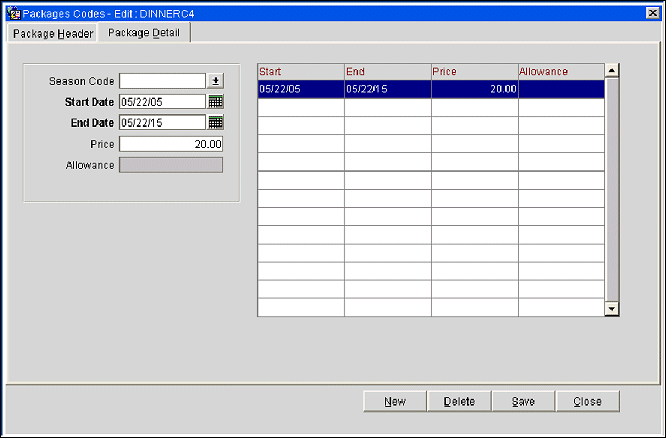 Dinner package element will be added to the price of the rate code to which it was attached. Allowance will be generated upon check-in, and then during the end of day process for each additional night that the guest stays. A single line entry will appear on the folio for the rate and package consolidated together.
