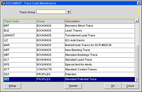 6. If there is an existing trace code that does not have any trace definitions attached then you are able to delete the trace code directly from the grid.