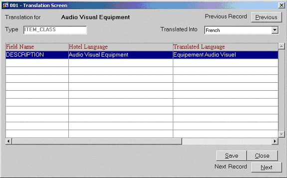 Once Item Classes have been created use the Alt + T hot key from the Attributes grid to display the Translation screen.